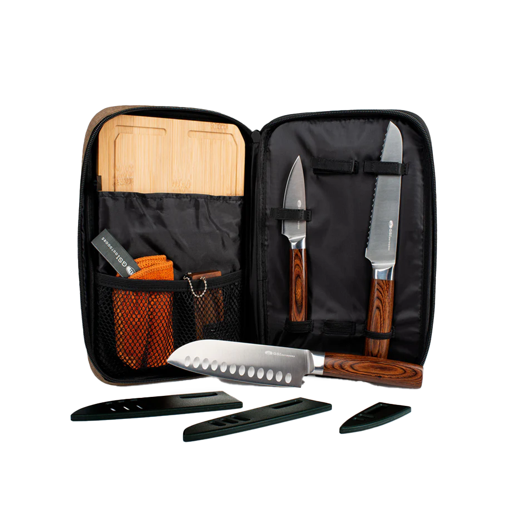 Elevate your culinary adventures with the Rakau Knife Set, a 3-piece collection crafted for precision, durability, and sustainability. Featuring a Chef knife with a Santoku blade and Granton scallops for thin, effortless slicing, a serrated bread knife designed to slice through even the toughest baguette crust, and a versatile paring knife perfect for tackling fruit and vegetable prep with ease. This set also includes a sustainably sourced bamboo cutting board with a juice gutter, a non-abrasive recycled microfiber towel for easy cleanup, and a convenient recycled PET cloth case with integrated knife sheaths for safe storage. Built to last for generations, the Rakau Knife Set combines eco-conscious materials with exceptional performance, making it the perfect addition to your kitchen or campsite.